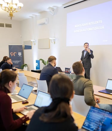 Mēs piedāvājam uzņēmumiem, valsts un pašvaldību organizācijām konsultācijas par MI augsta riska sistēmu ieviešanu un darbinieku apmācību