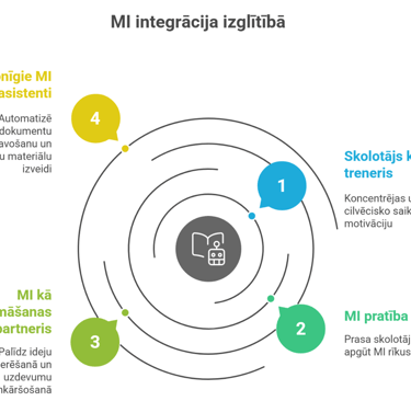 Vienotas vadlīnijas un IZM loma. Atšķirībā no Igaunijas, kur jau ir sākti pilotprojekti skolu pielāgotu MI rīku versiju ieviešanai sadarbībā ar "OpenAI" un "Google", Latvijā vēl notiek diskusijas, lai gan speciālisti jau darbojas. Mums ir nepieciešamas skaidras, valsts līmeņa vadlīnijas, politikas un pārvaldības ietvari MI izmantošanai skolās un augstskolās. Jāizstrādā caurspīdīgi noteikumi par MI ģenerēta satura izmantošanu, lai mazinātu krāpšanās risku un veicinātu atbildīgu lietošanu.